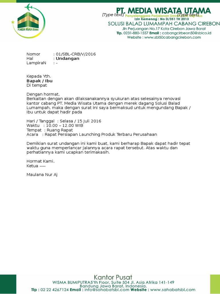 Contoh Surat Undangan Presentasi Produk Berita Umroh Haji