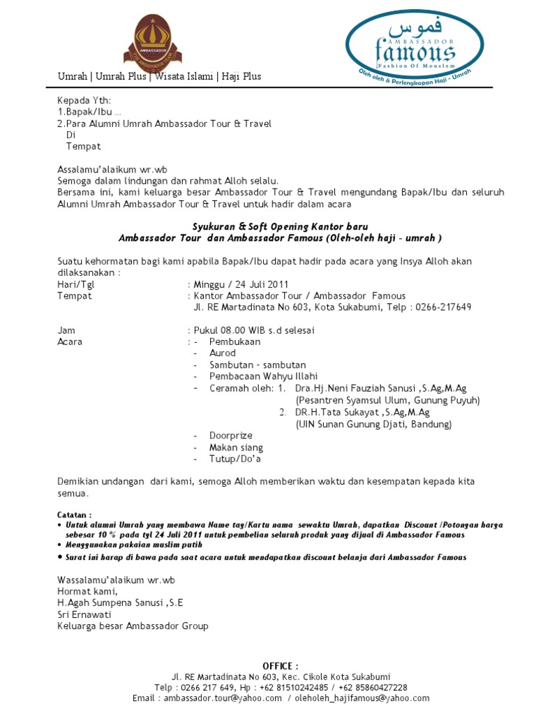 Surat Undangan Pebukaan Kantor Baru Ambassador